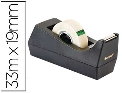 Portarrollo sobremesa scotch c38 color negro incluye 3 cintas scotch magic 33 mt x 19 mm