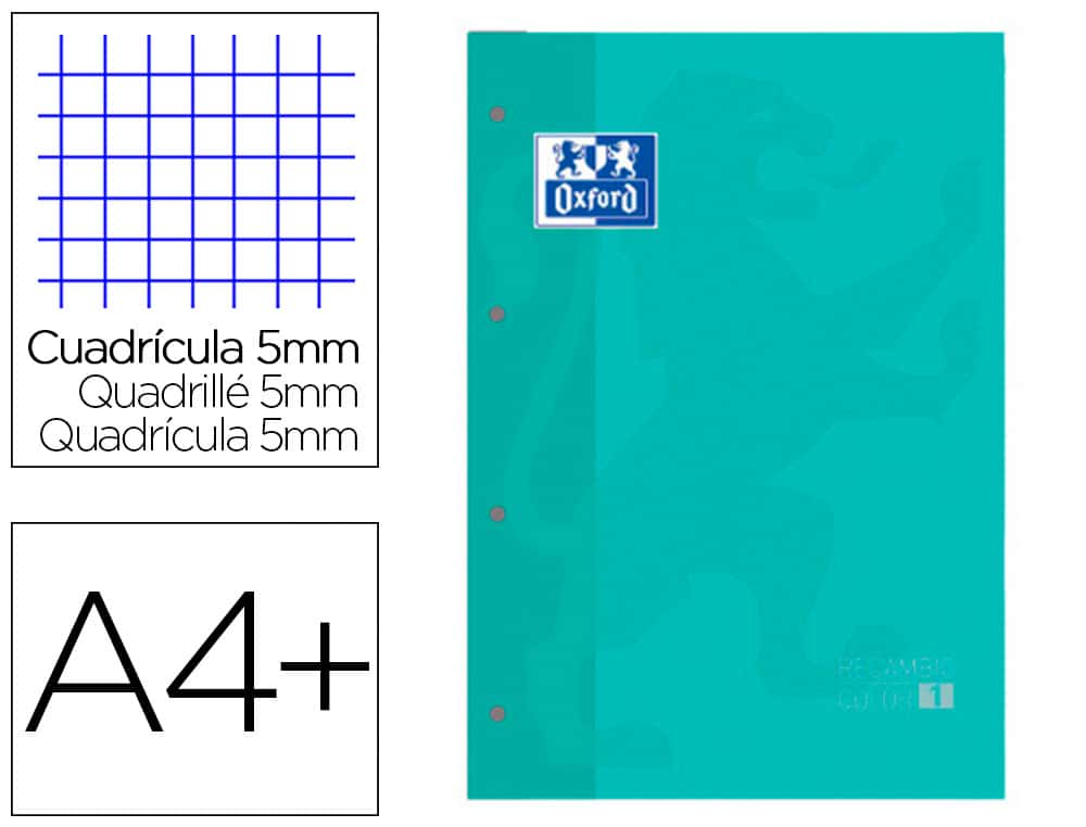 Recambio color 1 oxford din a4+ 80 hojas 90 gr cuadro 5 mm 4 taladros color ice mint