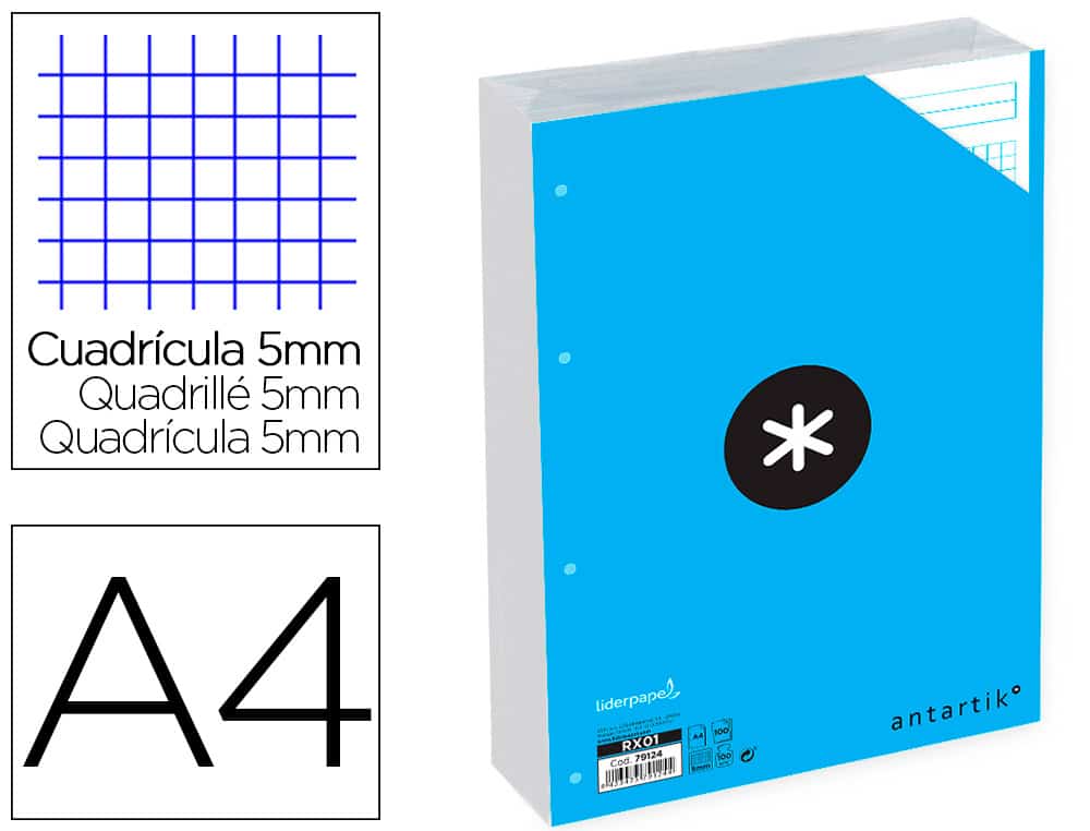 Recambio liderpapel a4 100 hojas 100g/m2 cuadro 5 mm 4 taladros bandas de 5 colores antartik