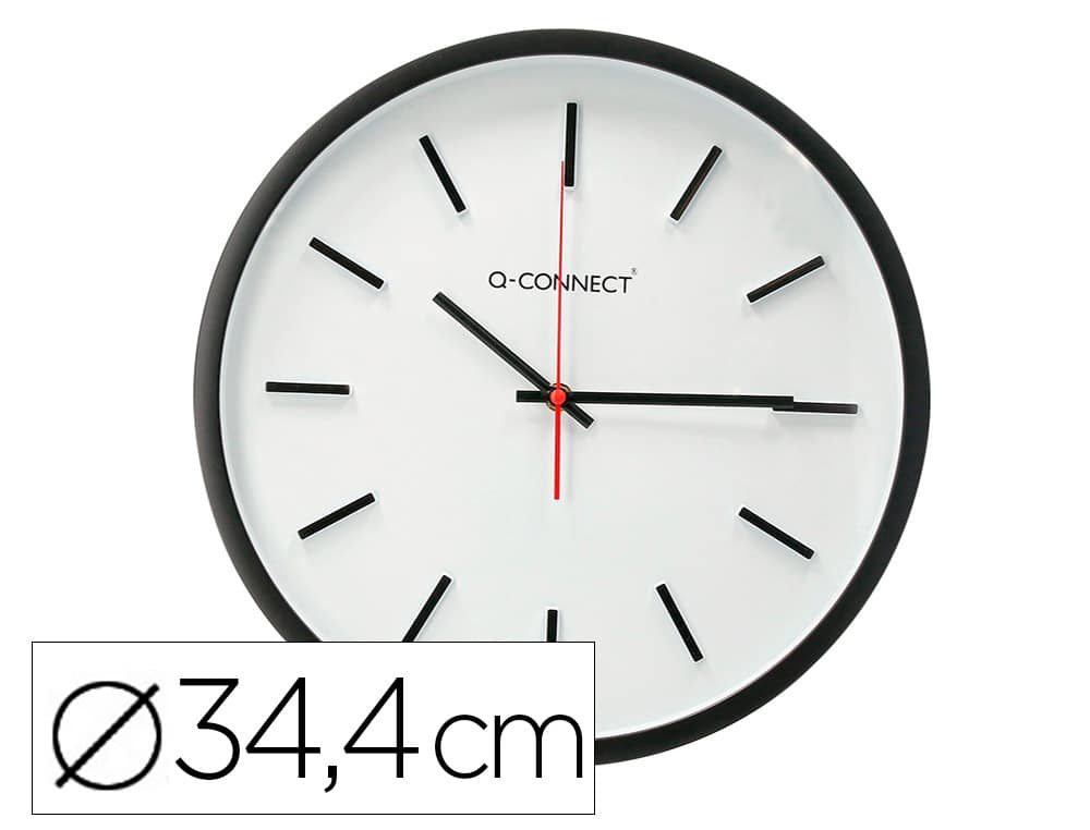 Reloj q-connect de pared de plastico redondo 34,4 cm movimiento silencioso color negro