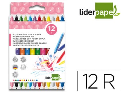 Rotulador liderpapel duo doble punta fina y gruesa caja de 12 unidades colores surtidos