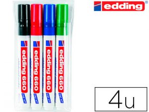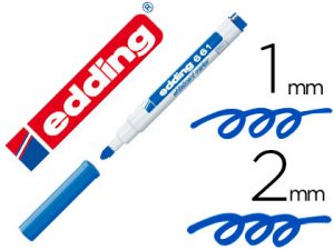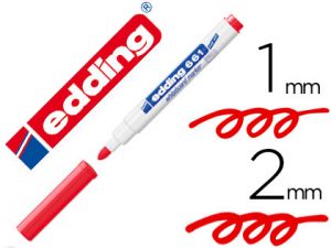 Rotulador para pizarras blancas con punta redonda. Cuerpo en color blanco y capuchón del color de la tinta. Trazo de 3 mm.