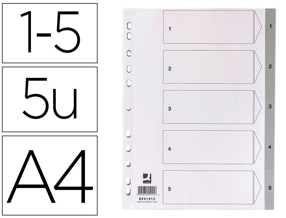 Separador numerico q-connect plastico 1-5 juego de 5 separadores din a4 multitaladro
