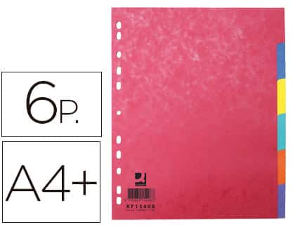Separador q-connect cartulina brillo juego de 6 separadores din a4+ multitaladro