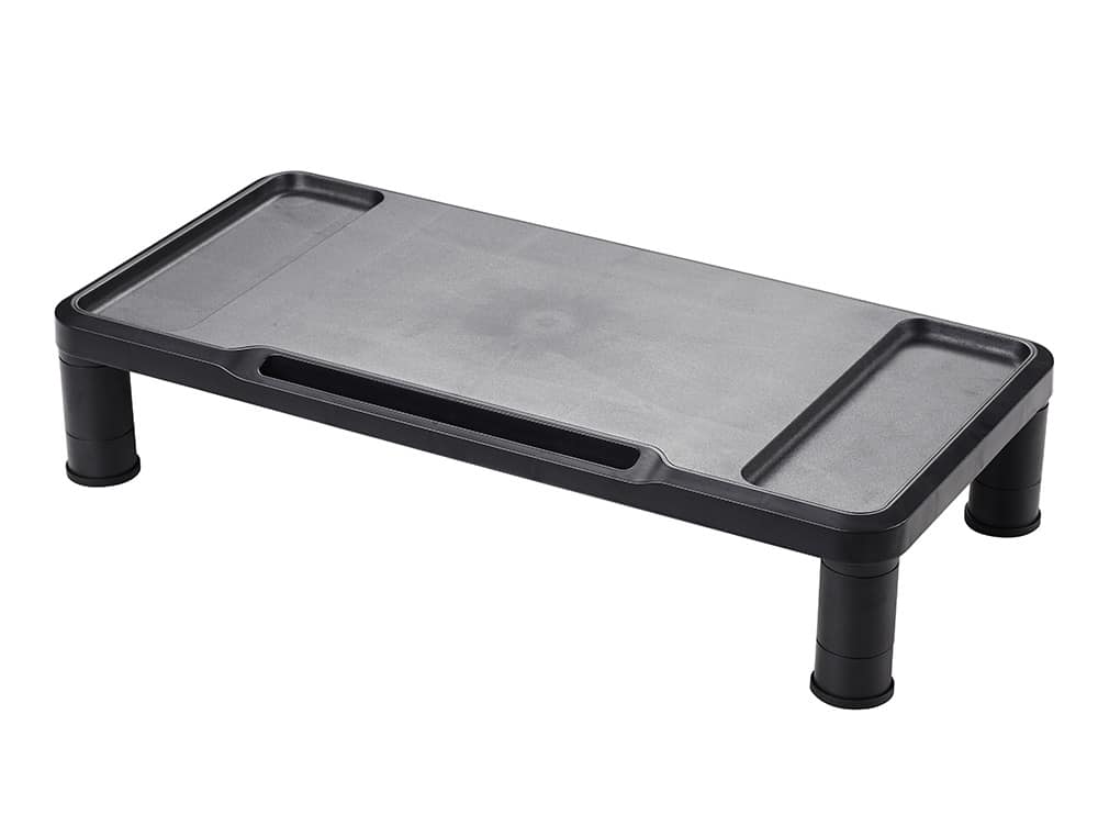 Soporte para monitor ajustable en altura. Se puede ajustar a 3 alturas: 62 / 82 / 112 mm. Color negro.