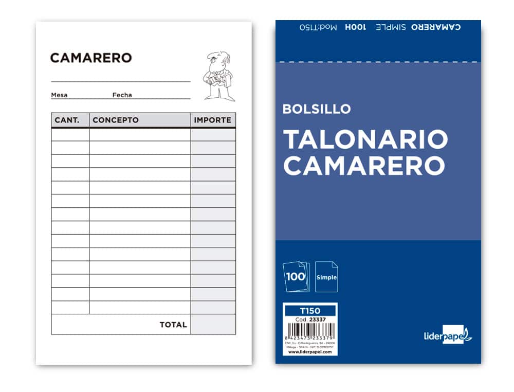 Talonario liderpapel camarero bolsillo original t150