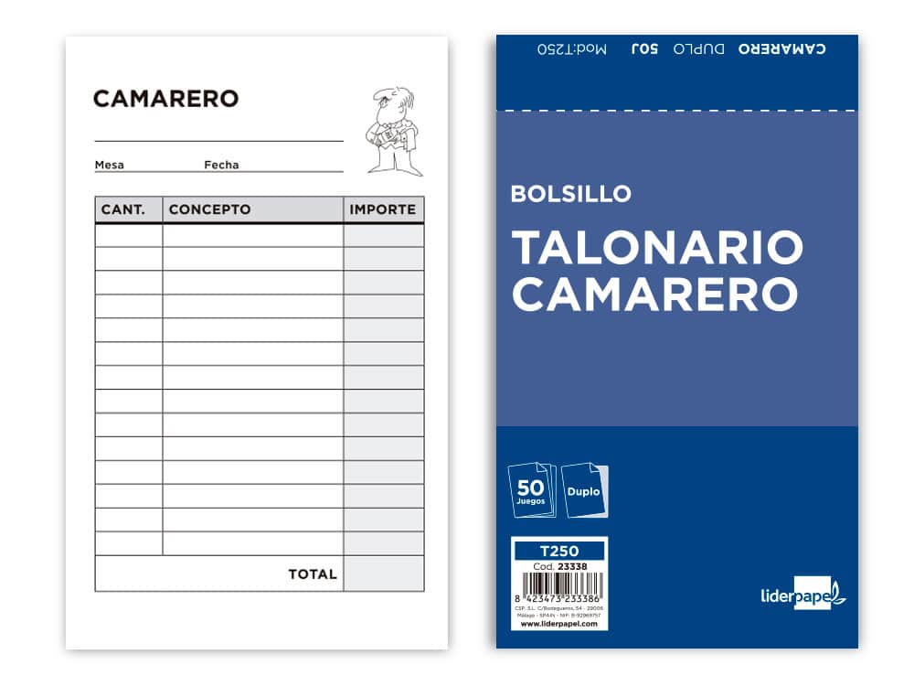 Talonario liderpapel camarero bolsillo original y copia t250