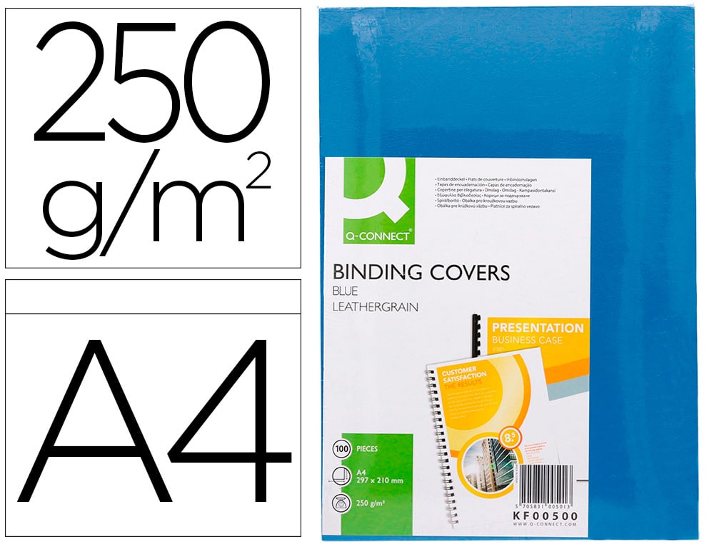 Tapa de encuadernacion q-connect carton din a4 azul simil piel 250 gr caja de 100 unidades