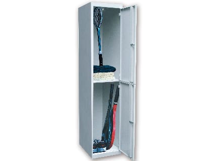 Taquilla metálica de 2 puertas de estética moderna y gran capacidad, perfecta para industrias y colectividades. Fácil montaje Pintura Epoxi RAL 7035 (Gris perla). Cerradura con llave incorporada. Portaperchas. Rejilla de ventilación. Portaetiquetas. Medidas: 40 x 180 x 50 cm.