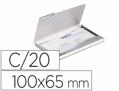 Tarjetero durable aluminio capacidad 20 tarjetas de visitas 55×90 mm color plata 100×65 mm