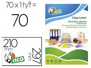 Etiqueta adhesiva tico verde fluor permanente fsc laser/ inkjet/fotocopia 210×297 mm caja de 70 unidades